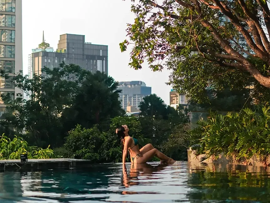 It’s the perfect place to relax at any time of the day. So, what are you waiting for? Your dream retreat awaits. Escape the city heat and soak up the sun at our lush urban oasis. Enjoy a full day of poolside relaxation with access to the pool, sauna, steam room, and lockers, perfect for unwinding in style. (Please note: GYM access is not included.)