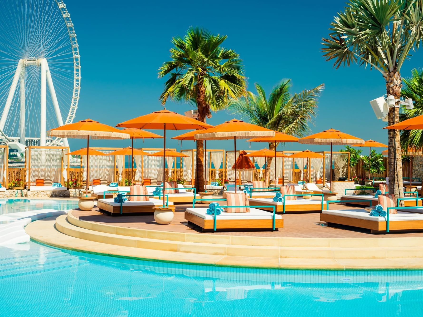 Sunday brunch by the pool with live DJ and roaming entertainment and unlimited drinks