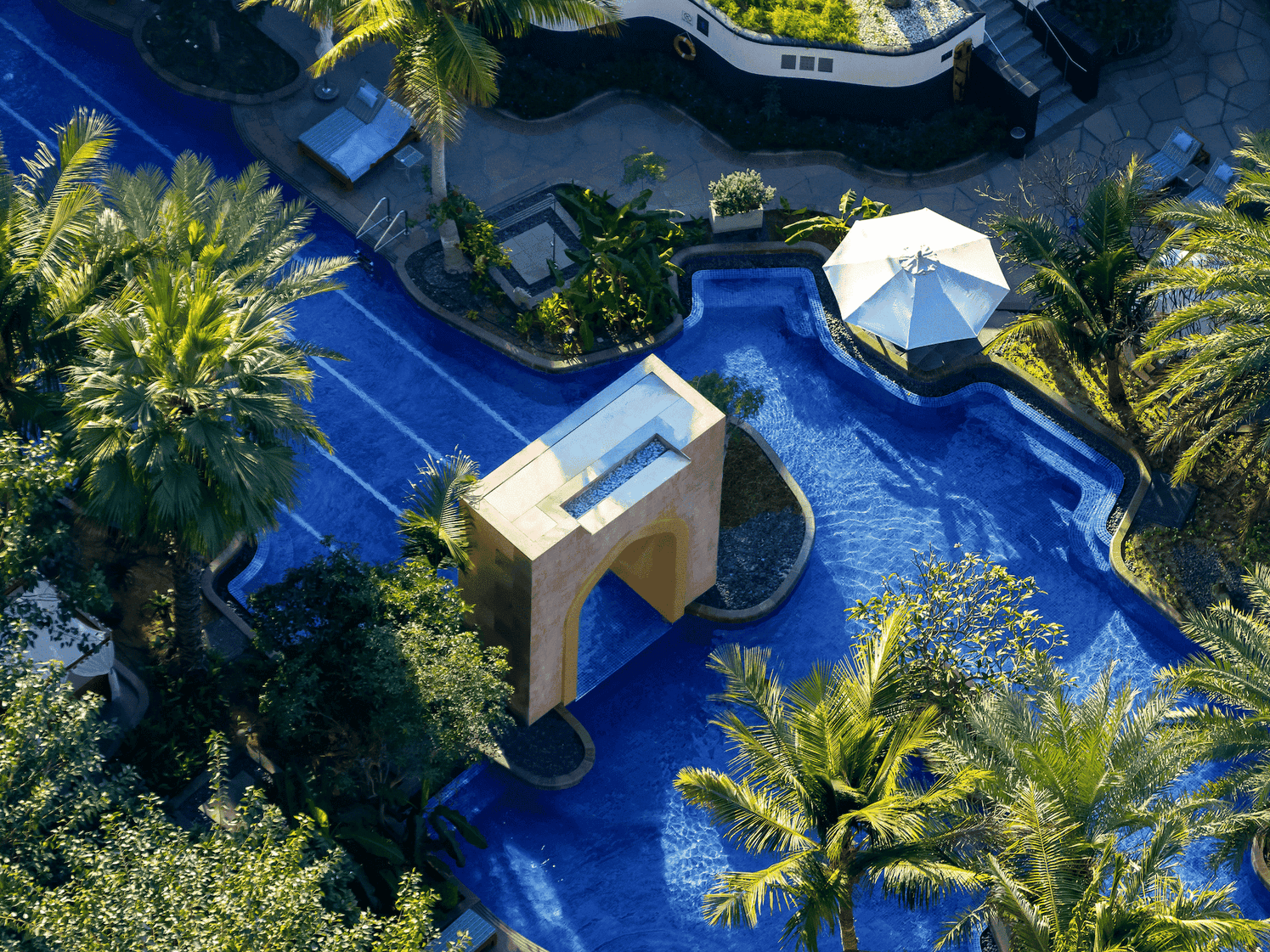 Discover a tranquil escape on the sixth floor with 5,500 sq. m. of crystalline water, manicured gardens, and hidden pathways. Spend the day relaxing poolside with drinks, snacks, and more. A marble arch waterfall and landscaped islands frame the sparkling pool — perfect for a refreshing dip. Take in city views from your plush chaise lounge. For an enhanced experience, reserve a cocoon bed or private cabana package.