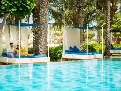 You'll have access to the sparkling outdoor pool, complete with comfortable loungers, pristine waters, and breathtaking views of the Arabian Gulf. You'll also be able to indulge in the exquisite culinary offerings, with food and drinks worth up to your pass value.